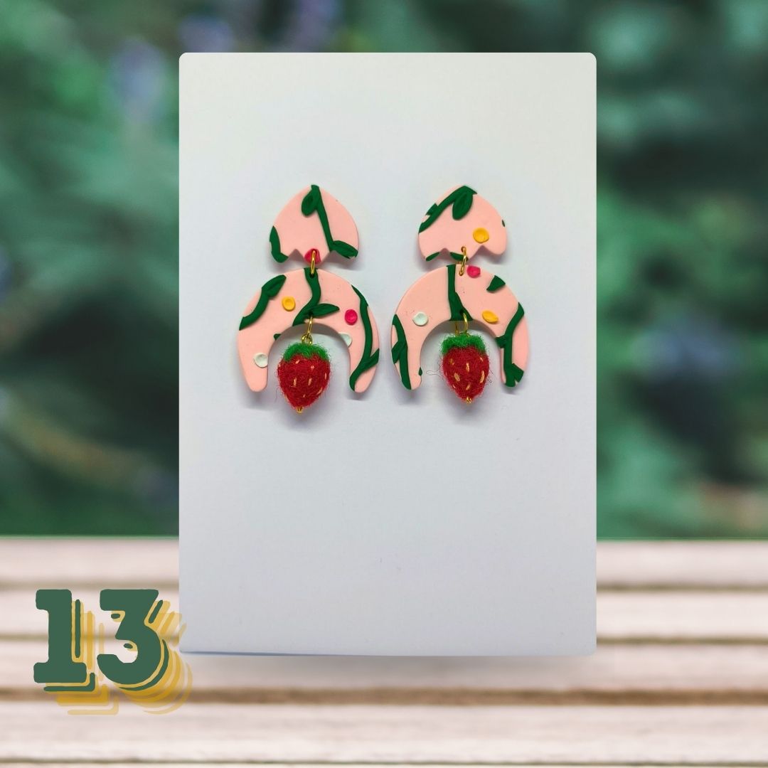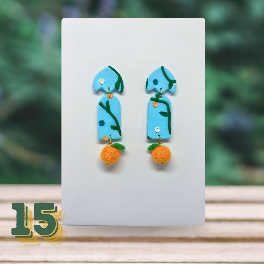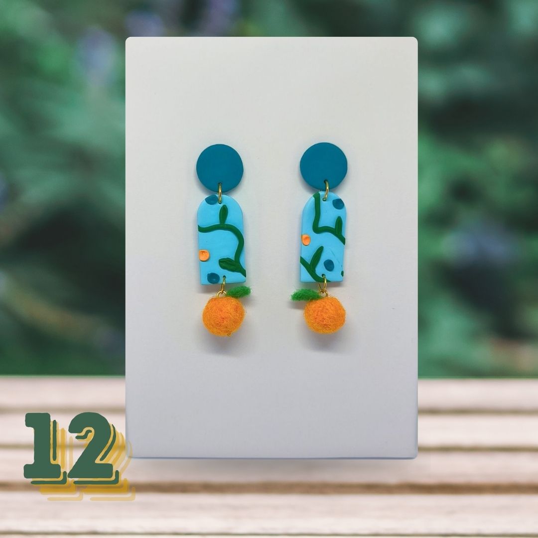 Queremos que entres en nuestra Huerta y lleves a casa una pieza única llena de colores. Hemos creado esta colección 100% a mano, inspirándonos en las frutas y los entramados de tallos, flores y hojas. Cada modelo de aretes es exclusivo, ya que por su elaboración los patrones de las bases son irrepetibles! Estas bases están hechas en arcilla polimérica, liviana, resistente a la humedad y se complementan con apliques hechos en fieltro agujado con lana natural.