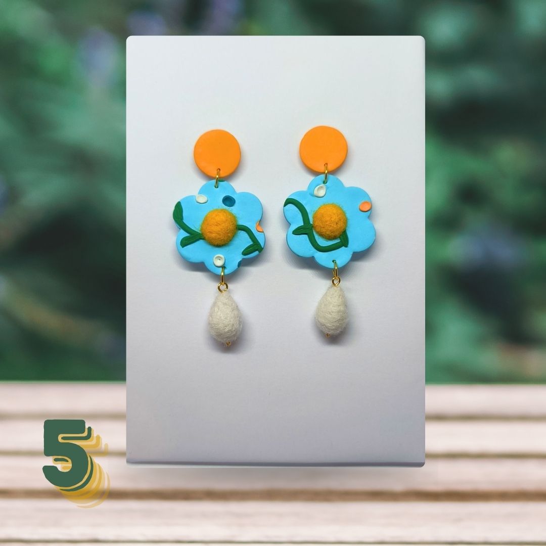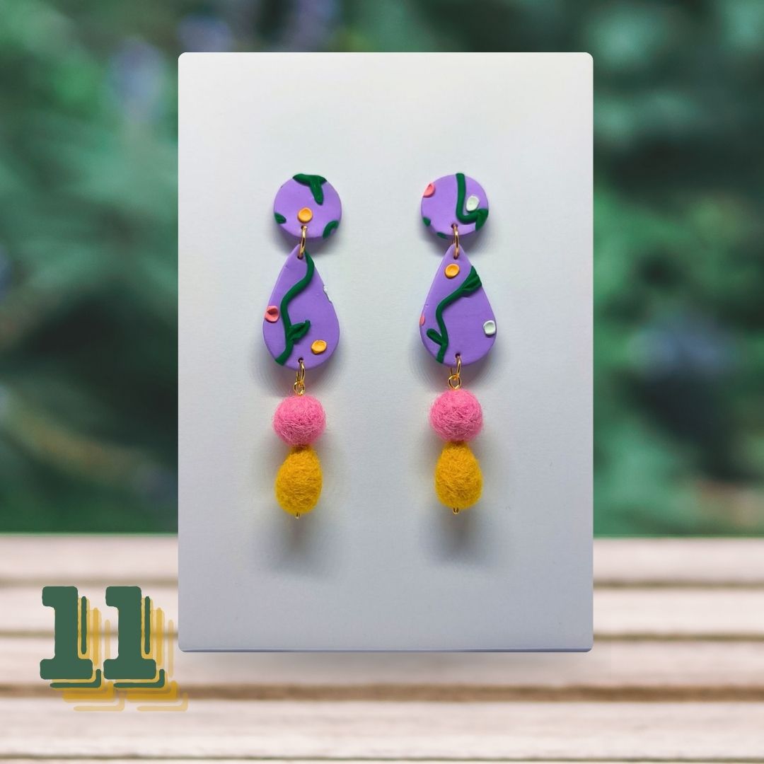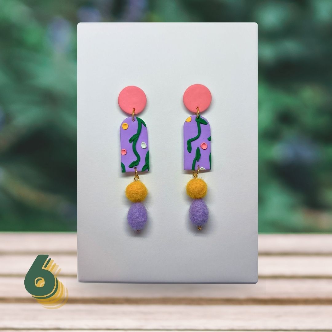 aretes fieltro, aretes arcilla polimérica, aretes needle felting, bisutería needle felting, bisuteria arcilla