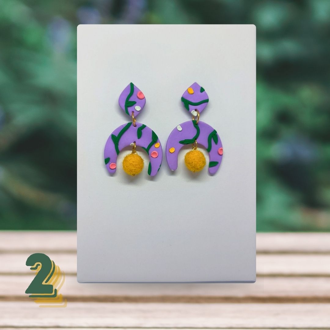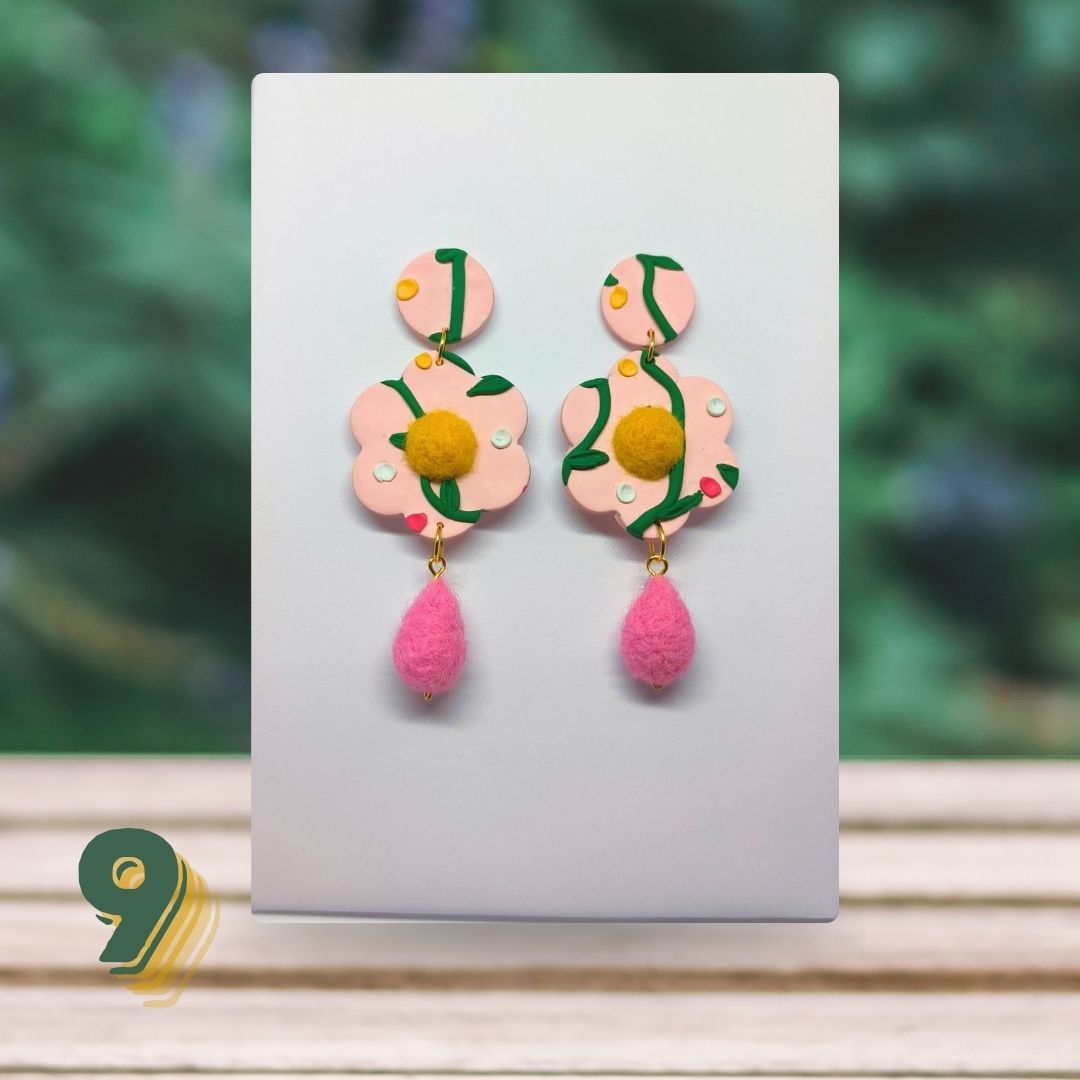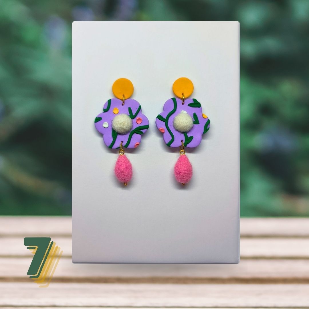 aretes fieltro, aretes arcilla polimérica, aretes needle felting, bisutería needle felting, bisuteria arcilla