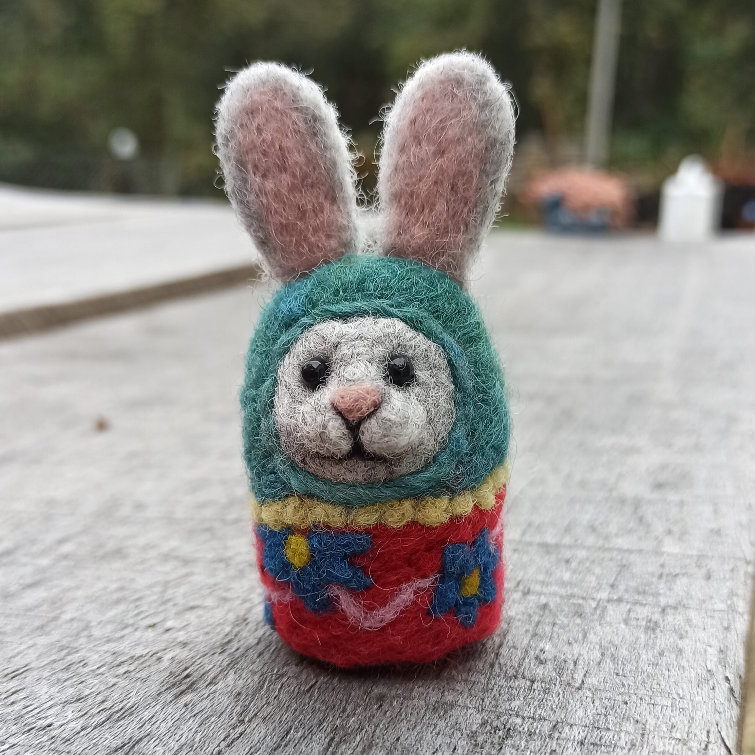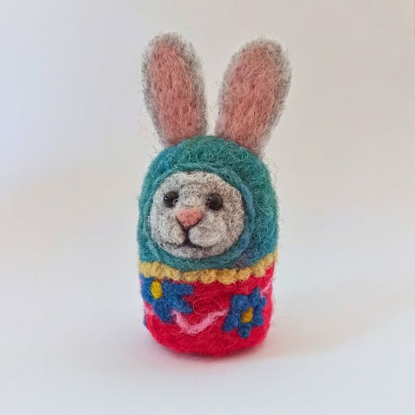 Podrás hacer uno de nuestros diseños exclusivos en casa: esta preciosa Matrioska con carita de liebre, llena de decoraciones coloridas será una experiencia de fieltrado única y divertida, con la que podrás ver el proceso de fieltrar una pieza desde cero, hacer caras tiernas y crear un hermoso animal para practicar tu técnica.